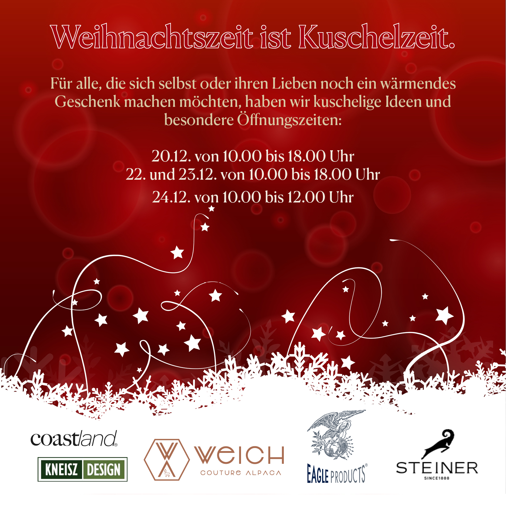 Wir wünschen all unseren Kunden ein wunderbar gemütliches, warmes und liebevolles Weihnachtsfest!